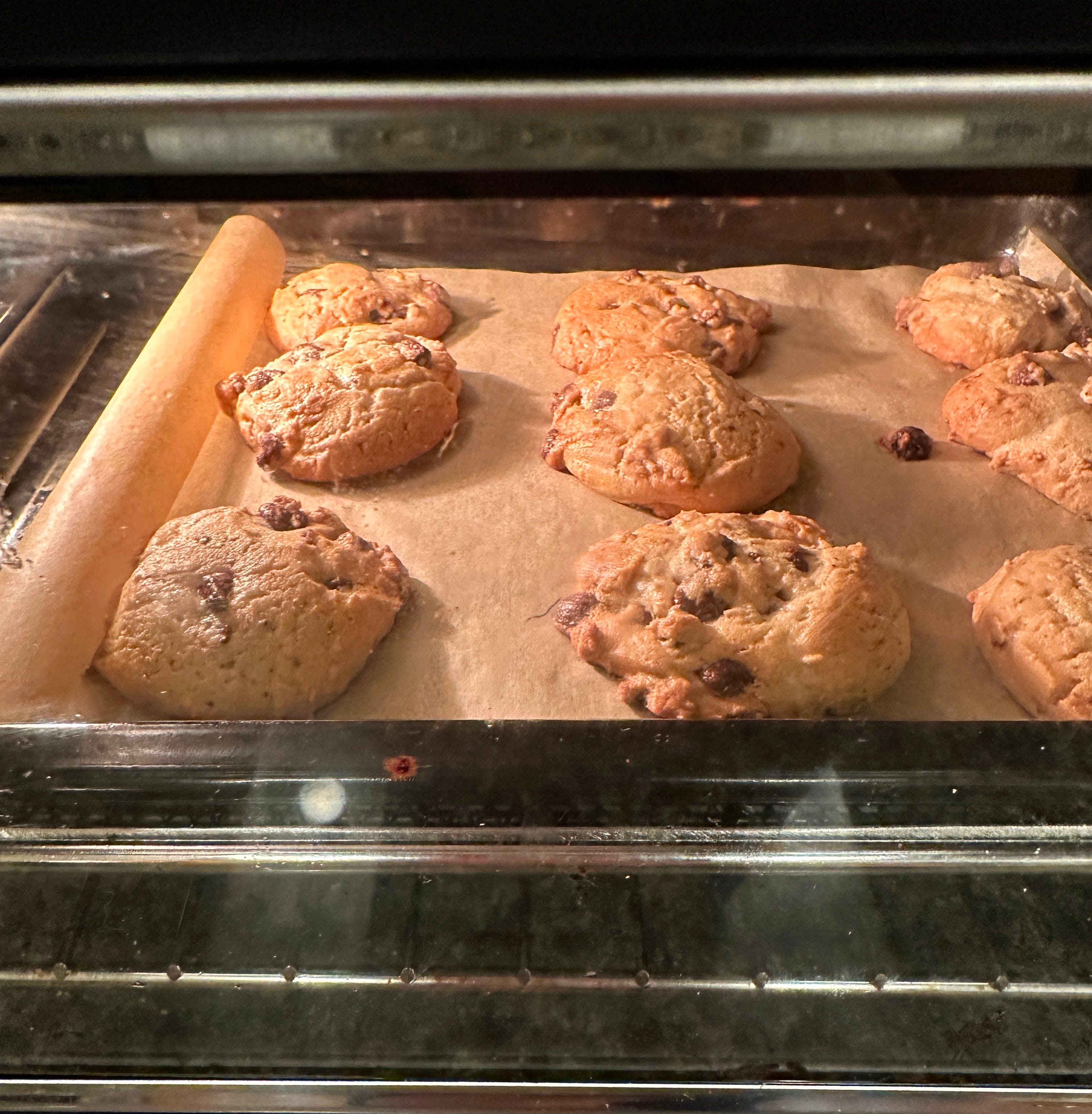 You all know me. I love an ultra processed food. I’m not here to say from scratch is better. I can also bake cookies fully from scratch. I’m not doing that here. I’m using the store bought dough. But the delightfulness of being able to have warm cookies, because also this way the cookies are warm! Which is the best. The Tate’s ones are not warm. And when it’s a movie night or something, just like, I’m going to bake 12 cookies really fast so we can eat them while we watch the movie.