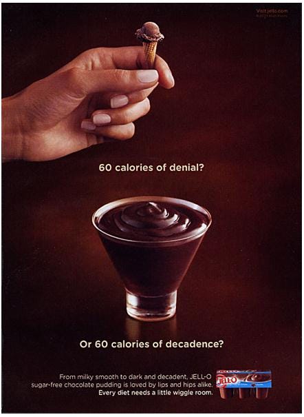 So yes, this is how food marketing works. But cut the “just.” This is Coca-Cola selling both regular and Diet Coke, and Kraft-Heinz selling both Kraft Mac and Cheese and Back To Nature Mac and Cheese, and also owning Oscar Mayer and Lunchables alongside Smart Ones and Crystal Light. They sell whiteness versus other-ness and restriction versus indulgence because these are our most profitable cultural narratives. You don’t have to call it a conspiracy theory but it is intentional and predatory and clearly causes a lot of harm.