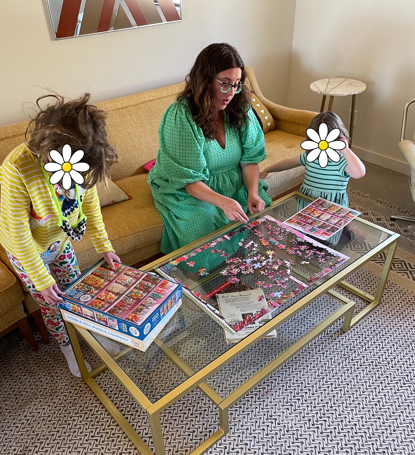 I think no one is surprised, if you know me at all, that I am now in the puzzling phase of my life, that I am I am a puzzler. I started it while we were on vacation. We had two days of a sick kid because that’s how family vacations roll. And so we were in our Airbnb and they had a bunch of puzzles. And I was like, I’m gonna do some puzzles while we’re hanging out here. It was so soothing!
