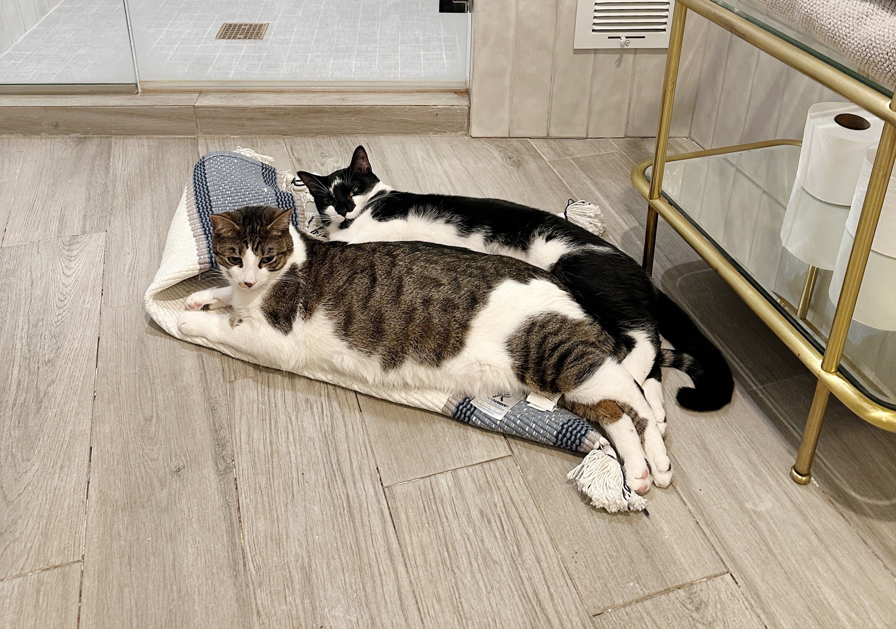 My Butter, in honor of you, my favorite Internet cat lady is going to be my cats. I’m going to give them a shout out. Licorice and Cheese. We adopted these kittens last year after my kids begged and begged. I mean, I’ve always been a cat person, but our old man cats had passed away. We had no cats for a while. And they make me so happy. They just are such love bugs.