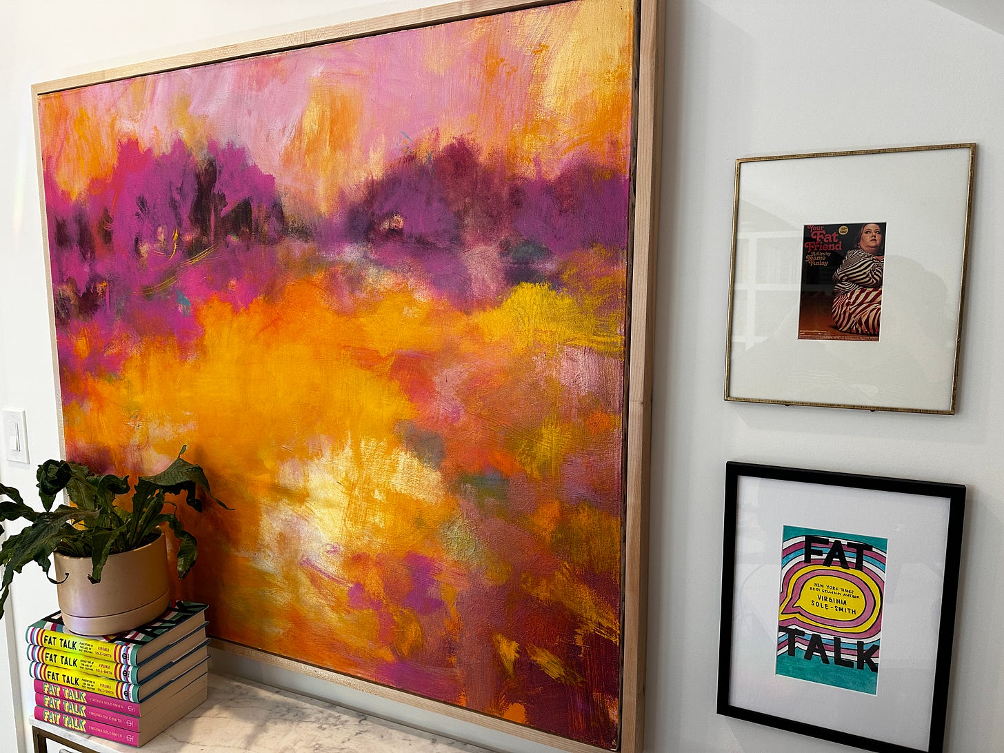 It’s just really beautiful. Mostly femme bodies, nudes, and a lot about mothers and children. I just got a new print of hers that’s just a really beautiful fat nude. What I really appreciate about this one is I think a lot of times in fat representation in general, we see the hourglass fat. And this is a woman with a belly. As you know, most fat people have bellies. It is a common trait of ours. I really love Taynee’s work. It’s just exquisite.