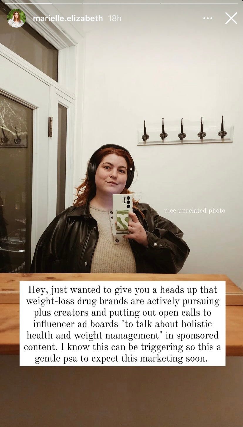 There's just been a lot going on on the internet around this. There have been a lot of fat creators who have decided to pursue weight loss. There’s been the whole “Midsize Queens” thing. I did just see Marielle Elizabeth post that Ozempic is actively seeking plus size content creators to work with. So, prepare yourself for that.