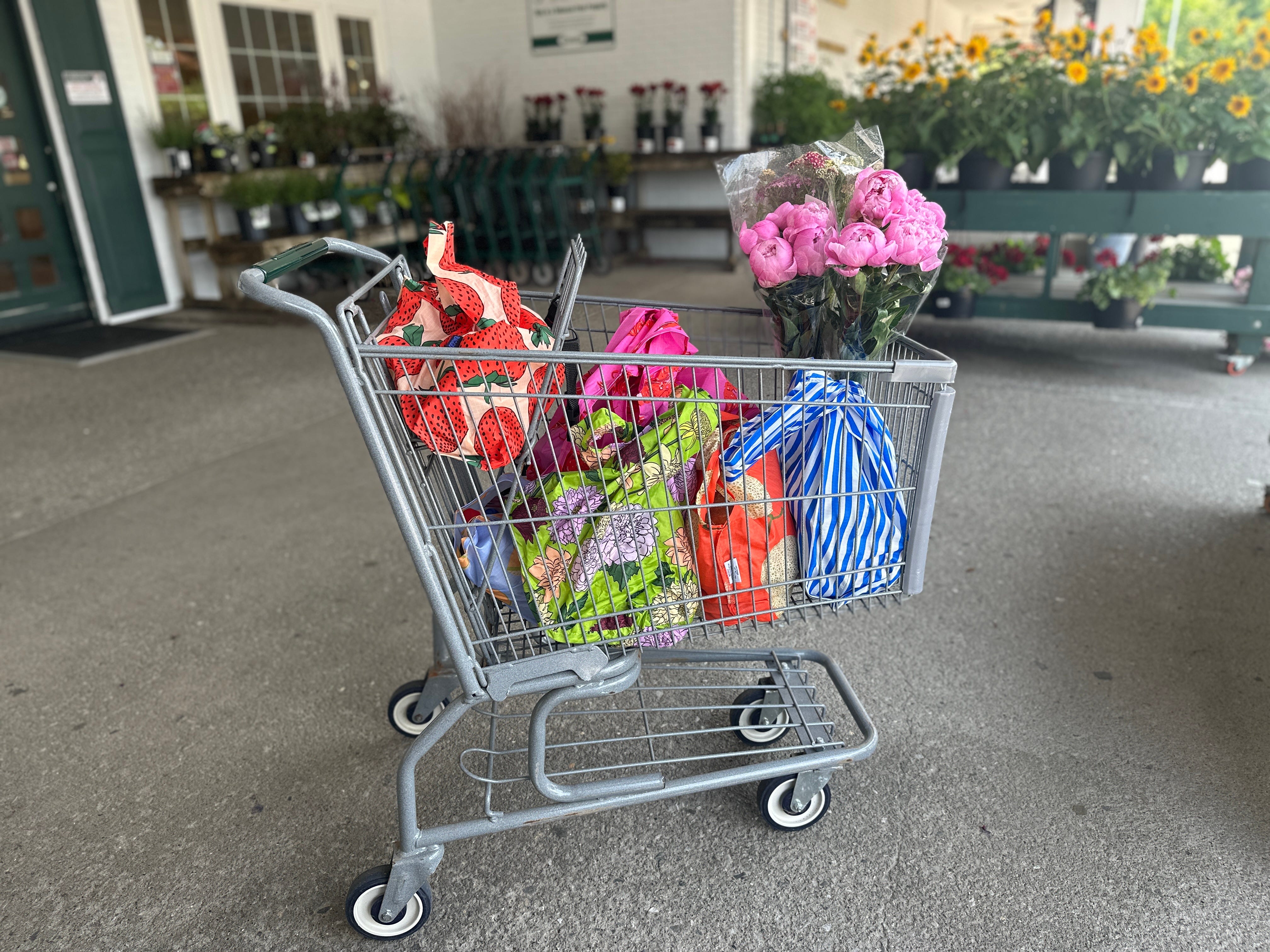 Okay, maybe you are innately good at this and always have plenty of reusable bags in your car. But I have long struggled to remember to bring bags to the store, which means I end up buying yet more reusable bags from the grocery store, and those reusable bags are actually not great — so bulky to store, prone to breaking, and I never got them back out to the car after I unloaded the groceries. But I’ve been gradually building up my collection of these reusable bags — the patterns are so good! they fold up super small and are very sturdy!— and I finally achieved it: A grocery shop where I had exactly the right number of bags for everything! Will I ever do it again? Maybe not. But gosh, it was glorious.