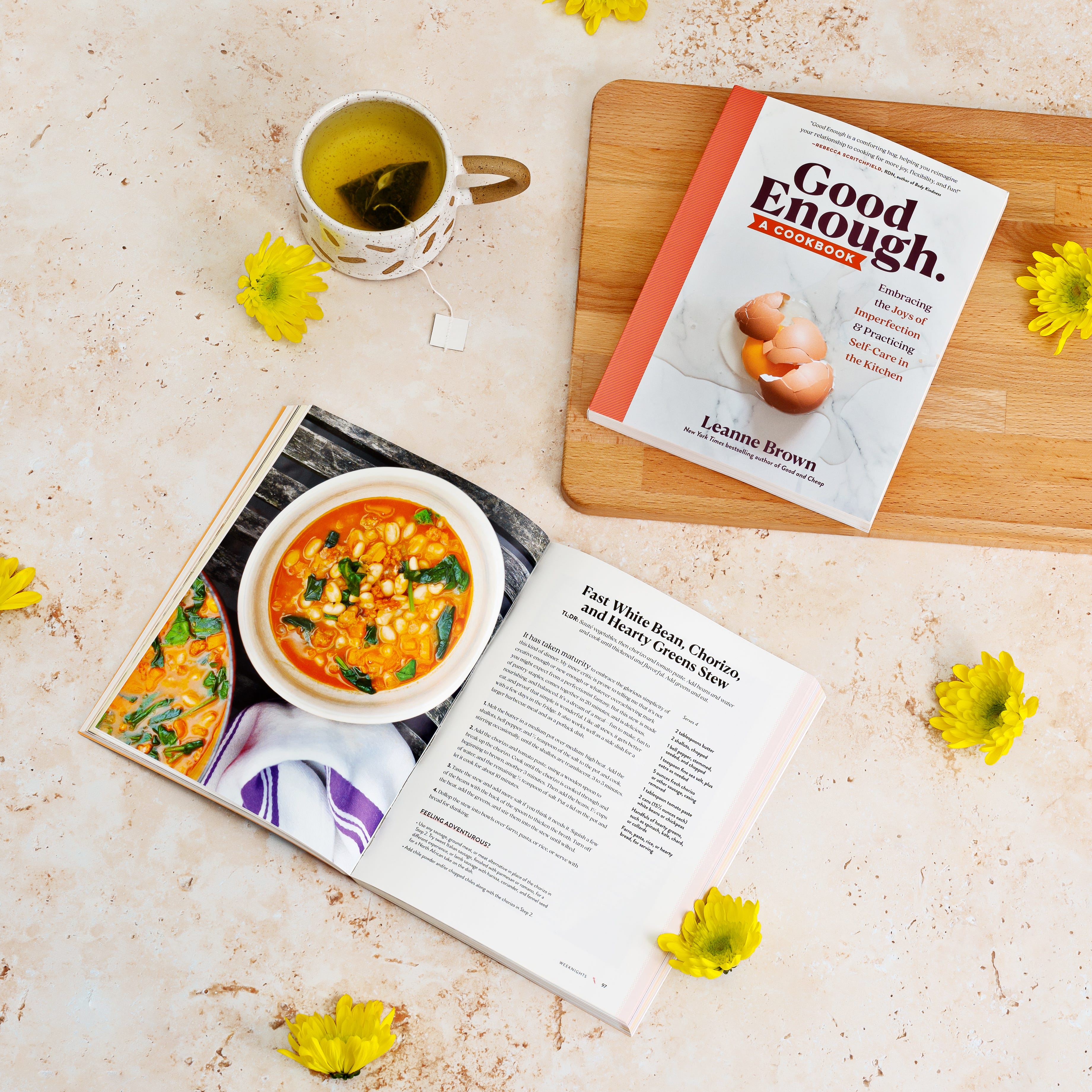 Well, let’s talk about the new cookbook. So it’s called Good Enough and it is so much more than a cookbook. It’s a different genre of book because you have recipes—and the recipes are wonderful—but then you have just essay after beautiful essay. Many of them are about why it is okay, and even necessary, to lower the bar and to lower our standards around food and ourselves. You’re giving us permission to do less. Tell us a little more about what made you want to write a cookbook that essentially gives people permission not to cook.