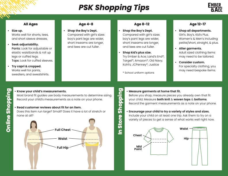 If there’s a girls plus section, there’s almost always a boys plus section. So, you know, most of the brands that I referenced here, do carry boys. And it’s going to be one of those things where you’re again, looking for sizing up, you’re looking for fabrics with stretch. I hate to say it, but that’s going to be your your best friend. And the other thing is like, any amount of adjustability, is going to help you. So for example, in like a woven cargo pant, look for the ones that have that little tab that we can roll the cuffs because then like, then it will actually maybe be the right length. If we have to size up, I’m gonna address that length. So it’s really like, a lot of the options are looking for stretch and adjustability and then you may end up having to maybe get some things hemmed. It’s really just about how does this adjust.