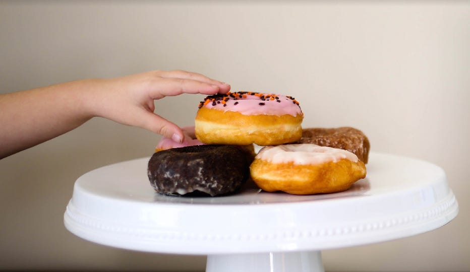 But even after implementing DOR and working through sibling conflicts in general, you may notice that there are certain favorite foods that just always get your kids amped up about having enough. For some reason, it's often condiments — I don't have definitive data, but there appear to be a not insignificant number of children who would happily eat an entire bowl of ketchup for dinner, or gnaw on a stick of butter like it's cheese — or, of course, any treat foods you serve less frequently. It's an understandable knee-jerk response to want to remove these foods from your life entirely, to throw up your hands and say "my kids just can't handle sugar!" But I wouldn't. Because they're going to encounter these foods in the world eventually, and you want them to have the skills to navigate them when that happens.