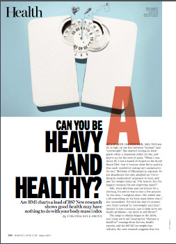 I've been writing about the Health At Every Size movement for several years now. (Pictured above is a feature I wrote for Marie Claire in 2014; here are the archives of the body image blog I wrote for the now-defunct iVillage back in 2011.) And I'm revisiting it again this month because I'm writing the book's chapter on obesity, and what it's like to eat when you live in a larger body. So I thought I'd talk about it a little here, in case you're not familiar with it. Health At Every Size (HAES for short, and I've heard it pronounced "hace" or "has") is part public health strategy and part social justice movement. Proponents argue that we should let go of our national obesity obsession and focus on healthy habits (like eating well and moving more) to pursue improved health directly, regardless of whether we lose any weight in the process.