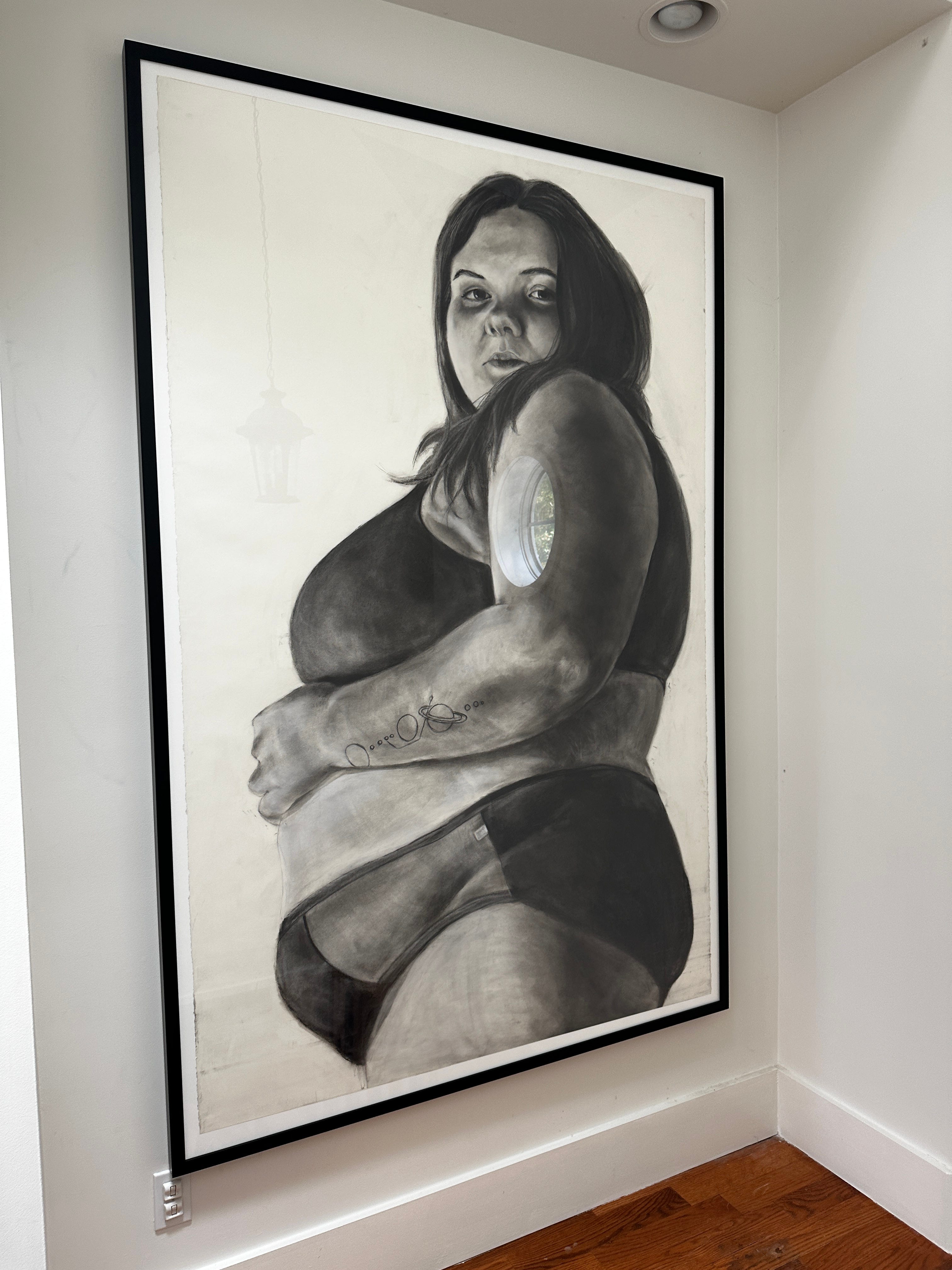 I found escape in home renovation culture for a long time because there is so much you can reasonably and pretty safely try to control there. When my body felt “wrong,” my house could be “right.” Except when it couldn’t because budget, because time, because perfectionistic standards about what homes should look like can so profoundly get in the way of our ability to live and be a family in them. Still, I don’t intend to divest from home culture completely. In the past few years, I’ve made friends(ish) with fashion again and no longer try to pretend my body just doesn’t exist. But oh goodness, I have all kinds of plans and dreams for my house right now. Last week, I had an eight foot tall Lindsey Guile drawing of my friend Hannah hung in our stairwell. The drawing was a gift from Dan, to celebrate FAT TALK becoming a NYT bestseller. I paid to have it framed and carefully installed as a gift to myself, because this has been a year and I’m craving beauty right now. And because the drawing takes up so much space and I need my home to be a place where my girls and I can exhale and expand, and not apologize for ourselves in any way.