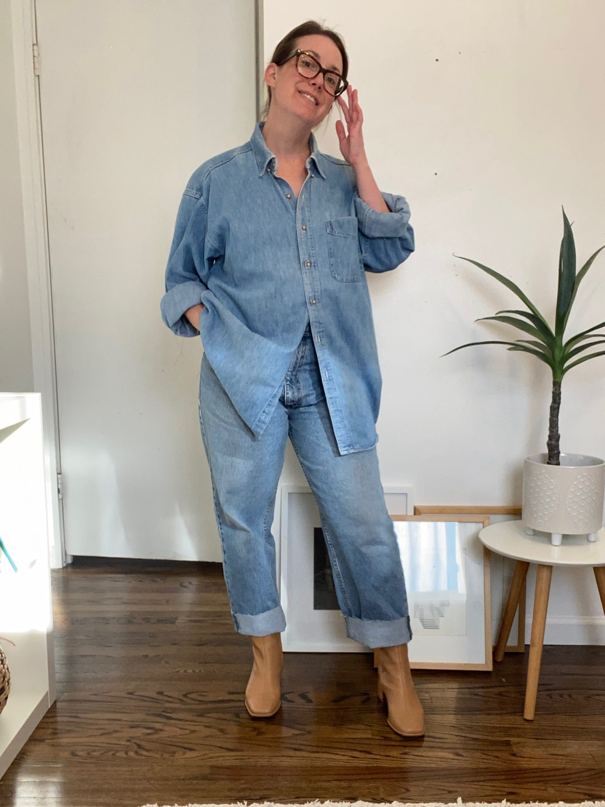 But one that felt a little more doable was, I feel like I have a rule in my head that if I’m wearing a big oversized shirt that I’m wearing more narrow pants. Or a tighter top with bigger pants. And I was like, what if I wear the bigger pants with the bigger shirt? I’m probably going to be comfortable.