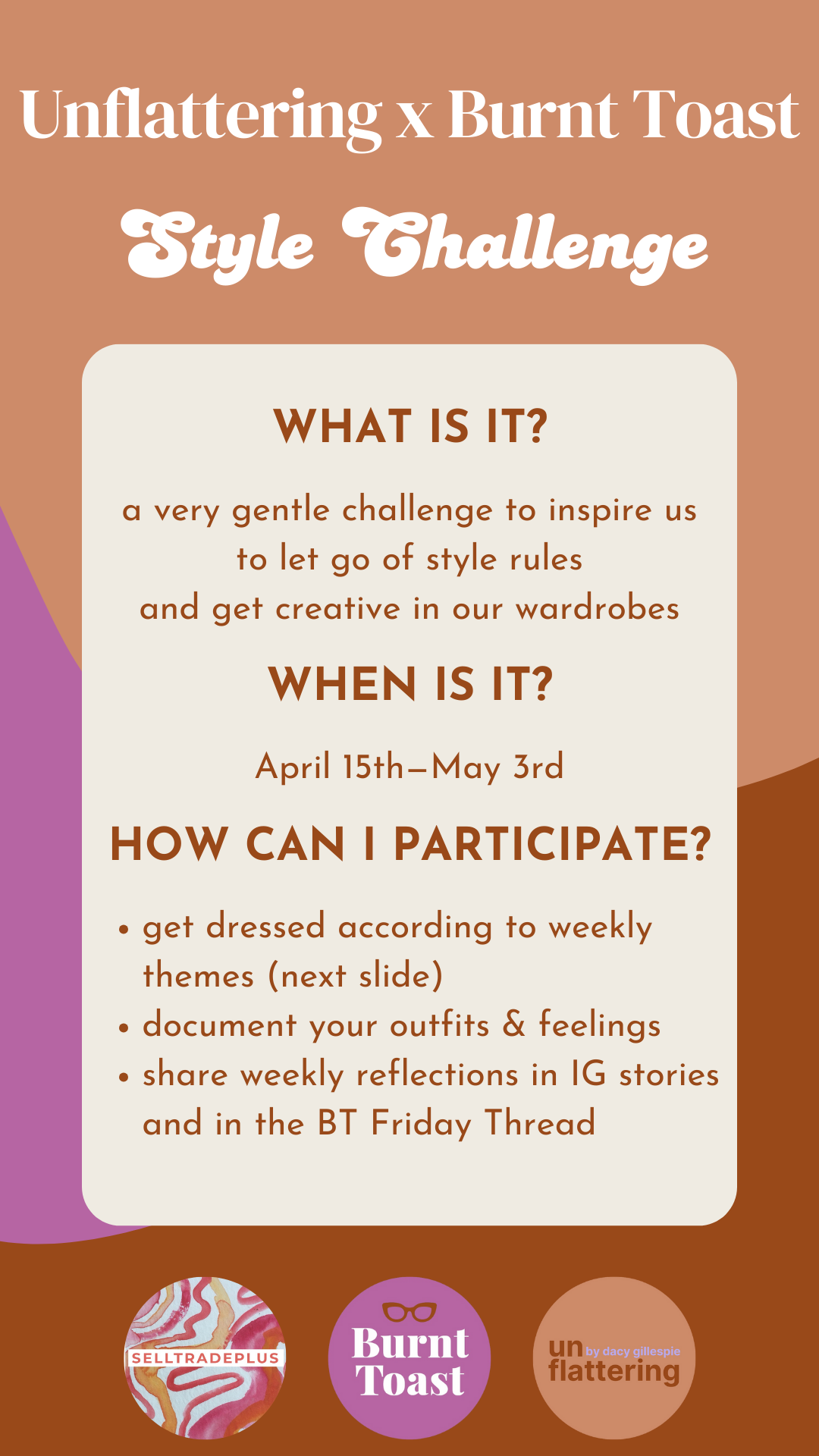 As you’ll see, the Unflattering x Burnt Toast Style Challenge is pretty different from a lot of other style challenges out there.