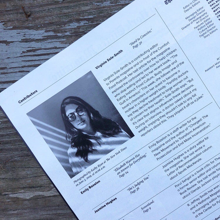 Inside story: Readers of the print edition were privy to a bit more behind-the-scenes detail via the Contributors page: During my reporting, one doctor asked about my weight, implying they shouldn't talk to any fat reporters about this. They played it off as a joke.
