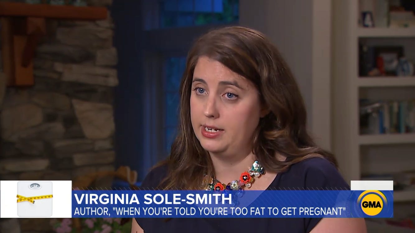 But one thing I struggled to understand when reporting this new piece was why doctors would turn away fat women, who, after all, represent paying customers as well as patients in need. It felt like the opposite of Bacon's contention that we created the obesity epidemic to sell diet pills. Then I learned about a popular marketing tool known within the fertility industry as a “shared-risk program” because it’s designed to reduce the financial risk borne by both patients and doctors. Clinics that offer such a program give patients a flat rate for three or four cycles of IVF. When patients get pregnant in the first cycle, clinic make a lot of money. If not, they have to reimburse patients for the cycles that don't work. "But these programs are money makers because they carefully select patients," one doctor told me. Clinics have a strong incentive to choose only the patients who seem likely to respond in the first cycle, which means that women who have a high BMI and might take longer to conceive are seen as financially risky — and often excluded, as are older women or women who already have a history of failed IVF attempts.