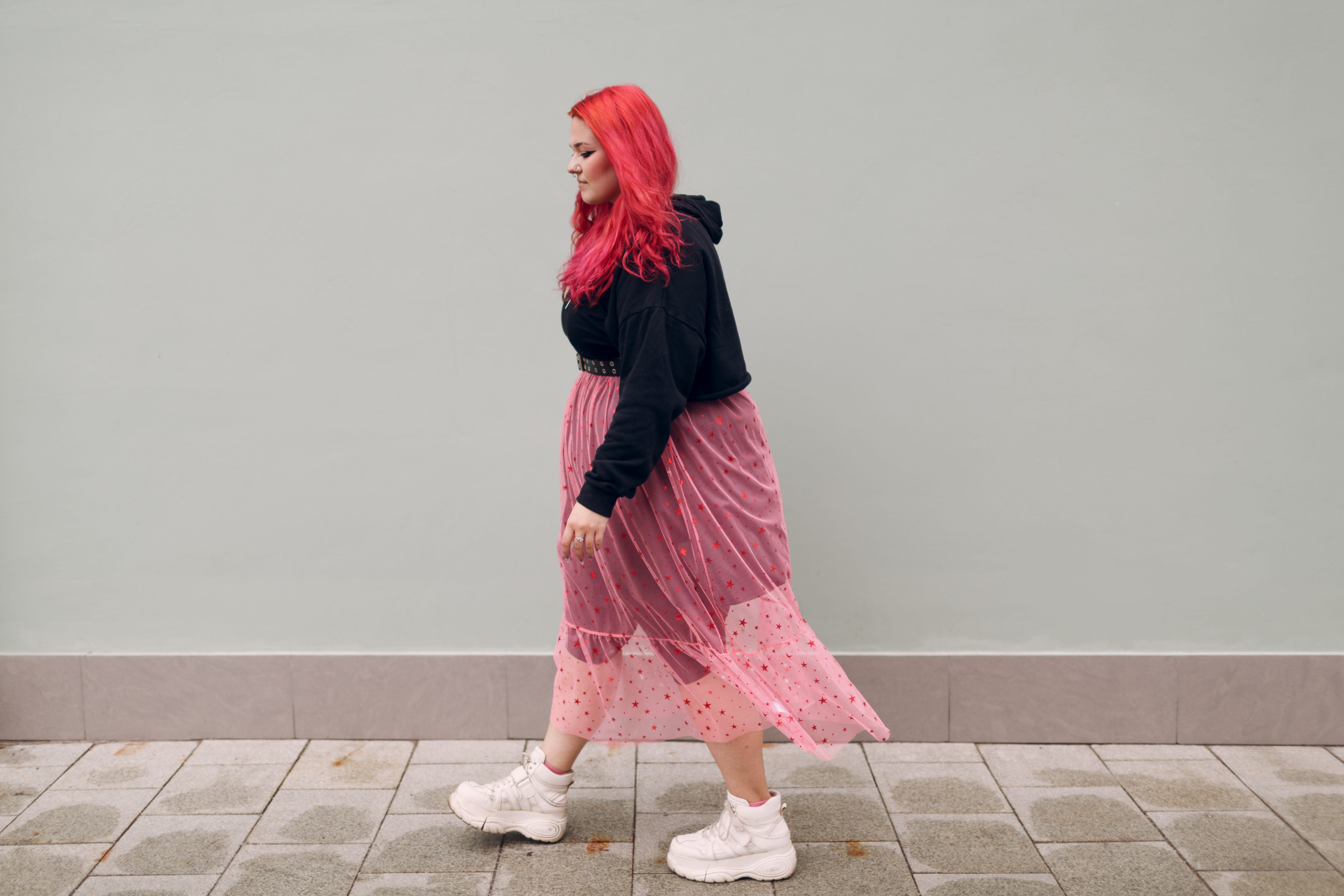 You and I both pushed ourselves, like you maybe with the mesh top, and me with the bare legs dress. We both pushed ourselves to wear things that were a little more visible than our day to day look. And it was nerve wracking to decide to wear it but then actually when I was out in the world wearing it, I was like, I like wearing a more visible outfit. That was kind of cool to realize.
