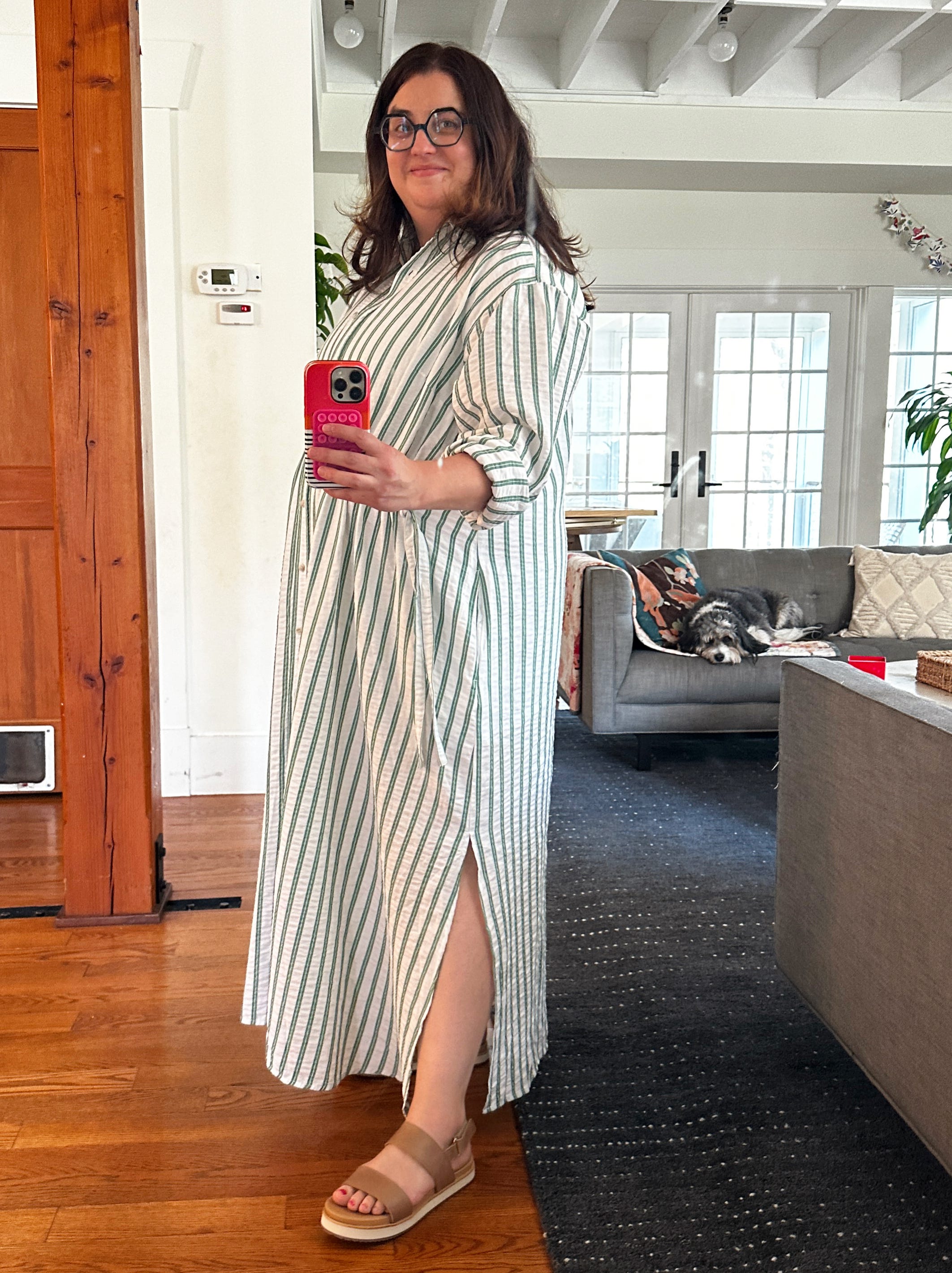Okay, my Butter is also striped. It is this Target maxi shirt dress that I have in the green.
